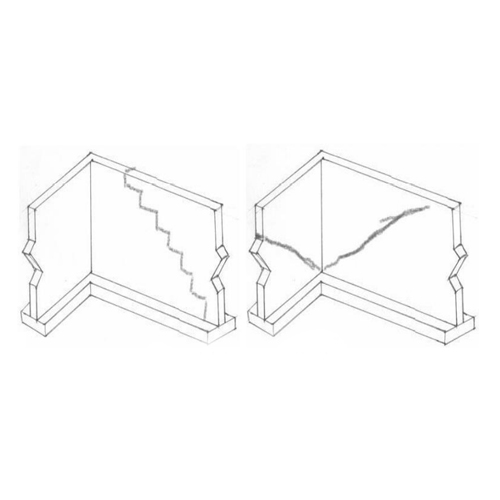 - در صورتی که پی زیر دیوار حرکت کند ترک های عمودی ایجاد می نماید.