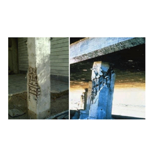 ترک های افقی به دلیل خوردگی آرماتورها و عدم طراحی مقطع ستون برای خمش اتفاق می افتد. ترک های اریب به دلیل درنظر نگرفتن نیروهای جانبی و پایین بودن مقاومت در تحمل بار محوری بوجود می آیند.